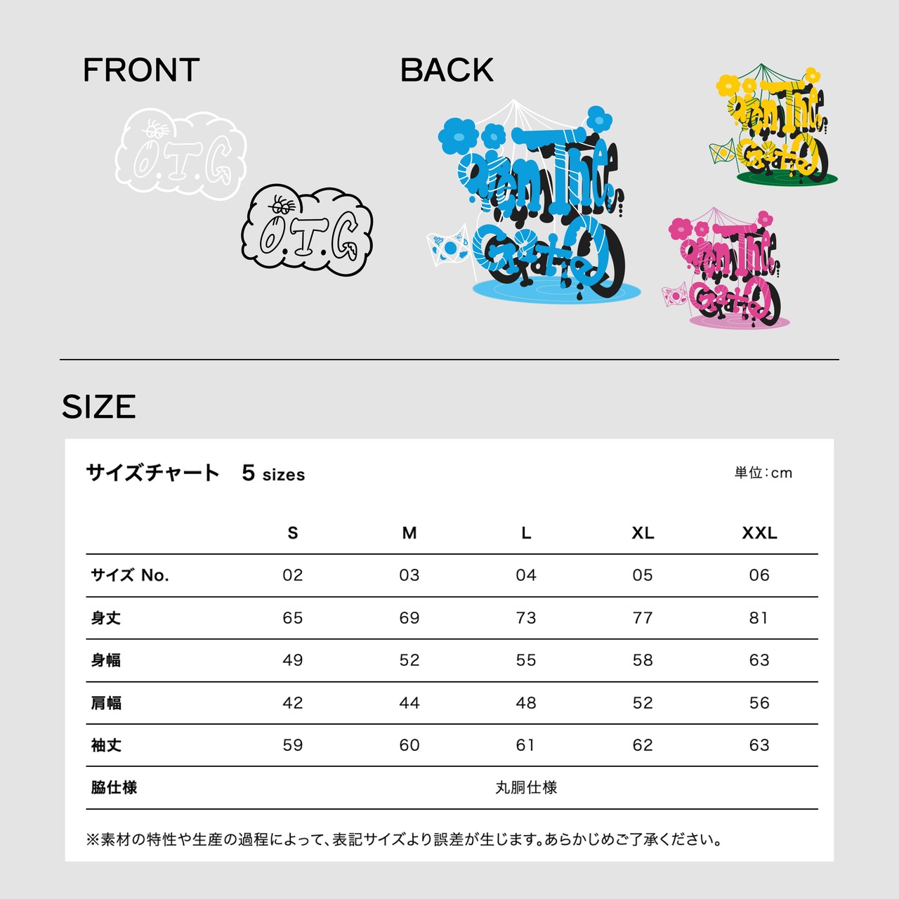 【FRONTプリントカラーについて】